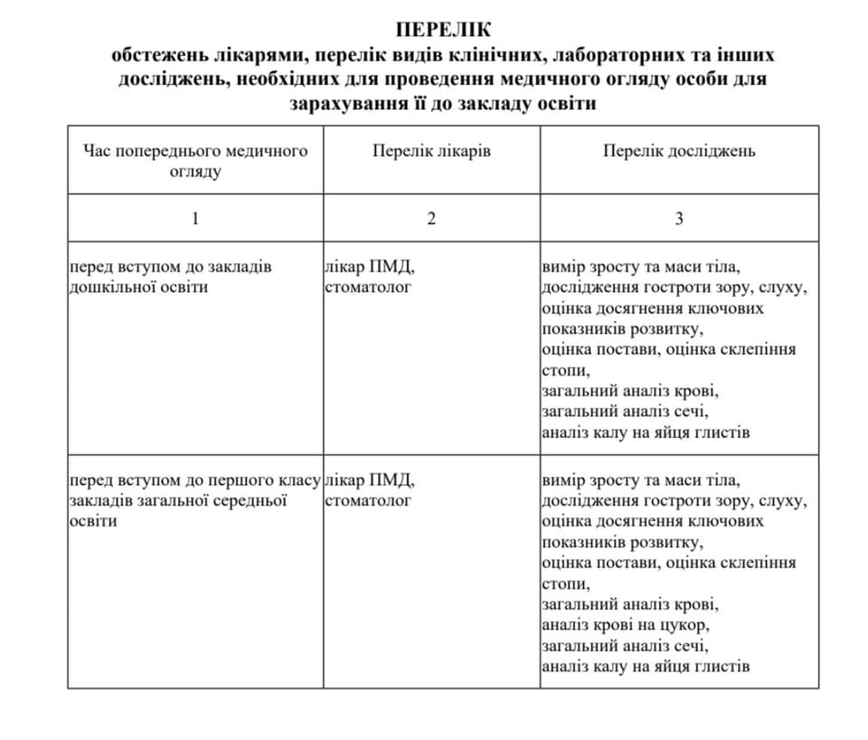 ✅ Медичні огляди для зарахування дитини до закладів дошкільної освіти та до закладів загальної середньої освіти є обовʼязковими.