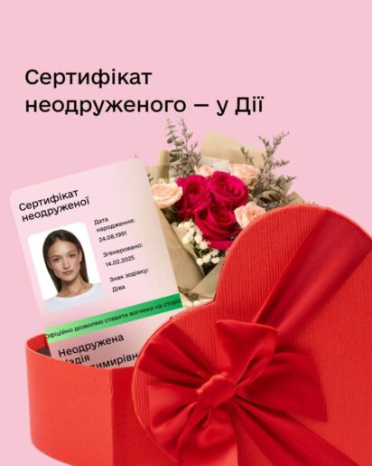 Дія обʼєднує серця українців. Додали в застосунок сертифікат неодруженого й неодруженої