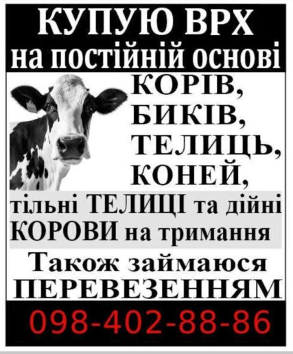 Реклама: Купівля ВРХ на постійній основі та послуги перевезення