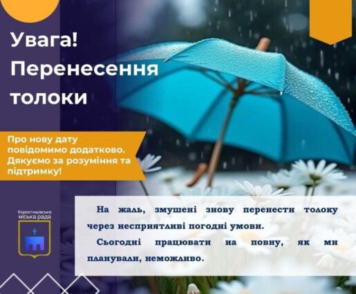 Це вже вдруге через погодні умови переноситься толока, що була вже перенесена з 11 квітня на 16 квітня (середа).