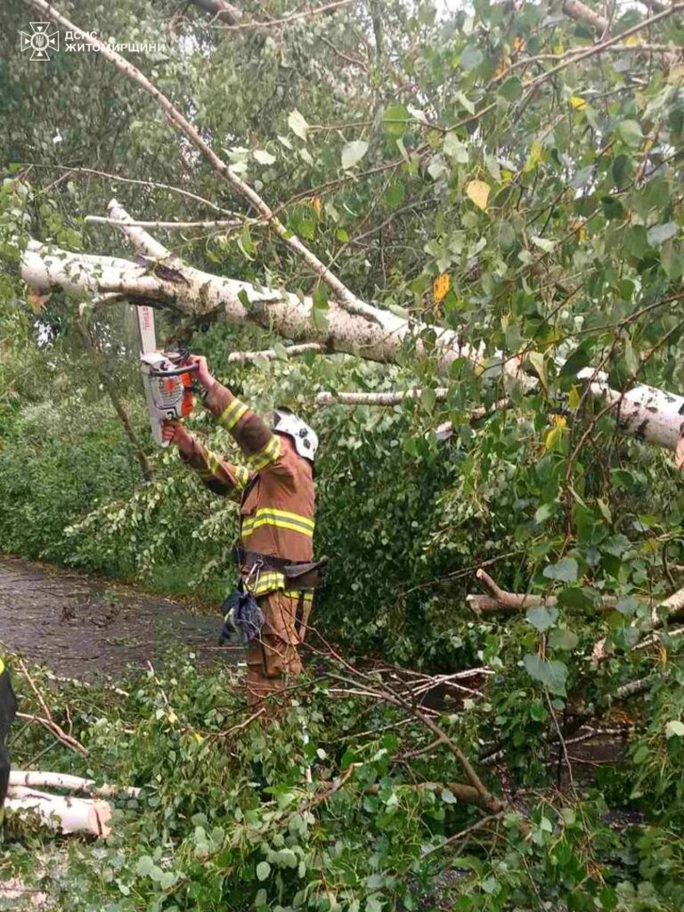 Упродовж дня, 6 серпня, рятувальники Житомирщини 6 разів залучалися до ліквідації наслідків негоди. Сильна злива, що пройшла територією області, спричинила повалення дерев.