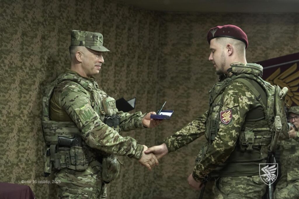 Воїнів 95 окремої десантно-штурмової Поліської бригади відзначив Головнокомандувач Збройних Сил України генерал Олександр Сирський. Він особисто вручив державні нагороди та відомчі відзнаки десантникам легендарної 95-ки. Про це повідомили у 95 окремій десантно-штурмовій Поліській бригаді ДШВ ЗСУ.