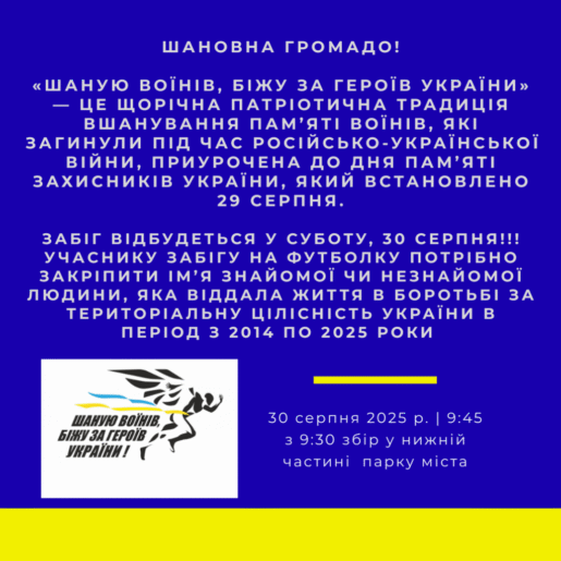 Новини, події Долучайся до забігу” Шаную воїнів. Біжу за Героїв України!” Надія Меленець 27/08/2025 Continue Reading Previous Освітній форум «Освіта під знаком змін: підсумки та горизонти» відкрив нові можливості для розвитку освіти громадиNext Відбулася 54 сесія Коростишівської міської ради. 28.08.2025. ВІДЕО More Stories Новини, події Щигліївському ліцею — 100 років! ВІДЕО Надія Меленець 20/10/2025 Новини, події Інформаційна пам’ятка щодо запобігання та протидії насильства за ознакою статті на робочому місці Надія Меленець 16/10/2025 Новини, події «Чому у сусіда є світло, а у мене — ні?» Надія Меленець 16/10/2025