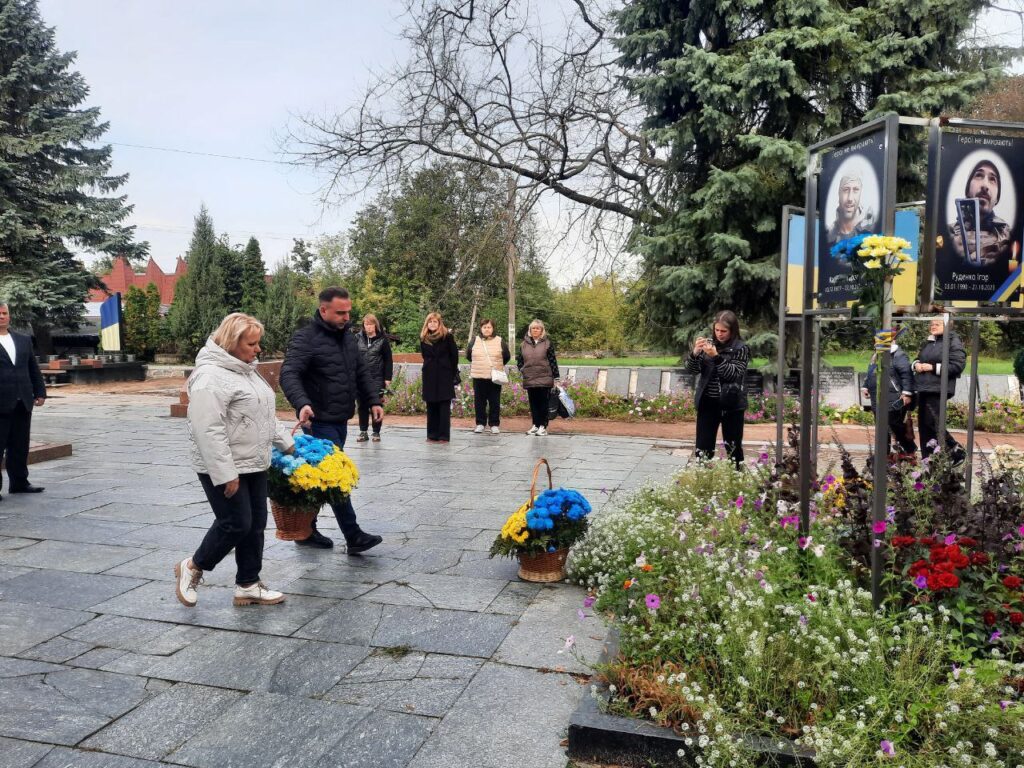 В. о. міського голови Юрій Денисовець та лідерка Коростишівського осередку об’єднання бійців і матерів Захисників і Захисниць України Житомирської області Ніла Добрянська поклали квіти до Алеї Героїв. Усі присутні вшанували полеглих Героїв хвилиною мовчання.
