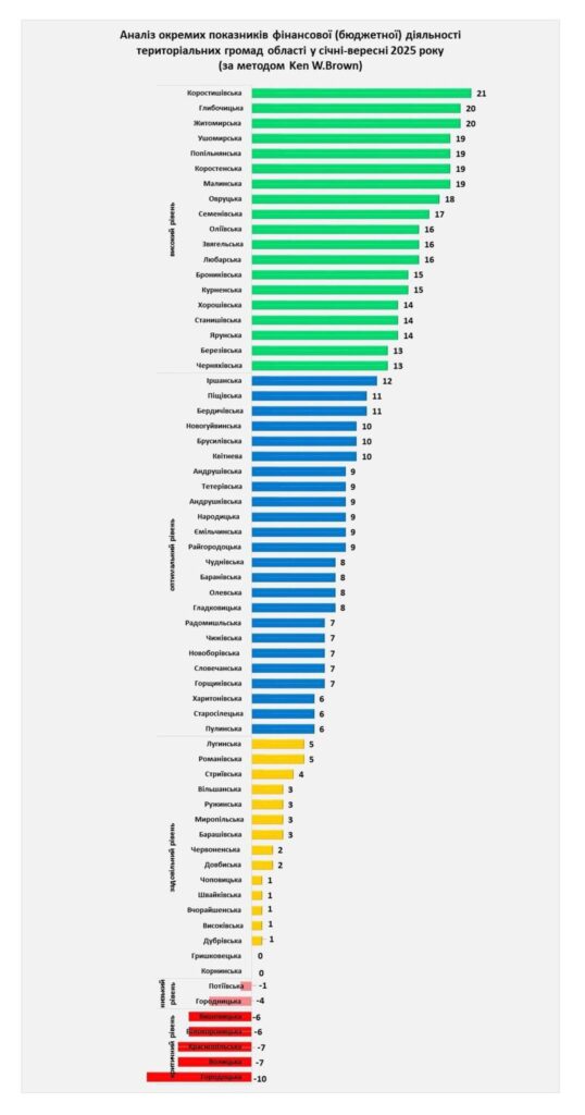 Рейтинг сформовано на основі оцінки фінансових показників бюджетів територіальних громад, яку проводить Департамент фінансів Житомирської обласної державної адміністрації.