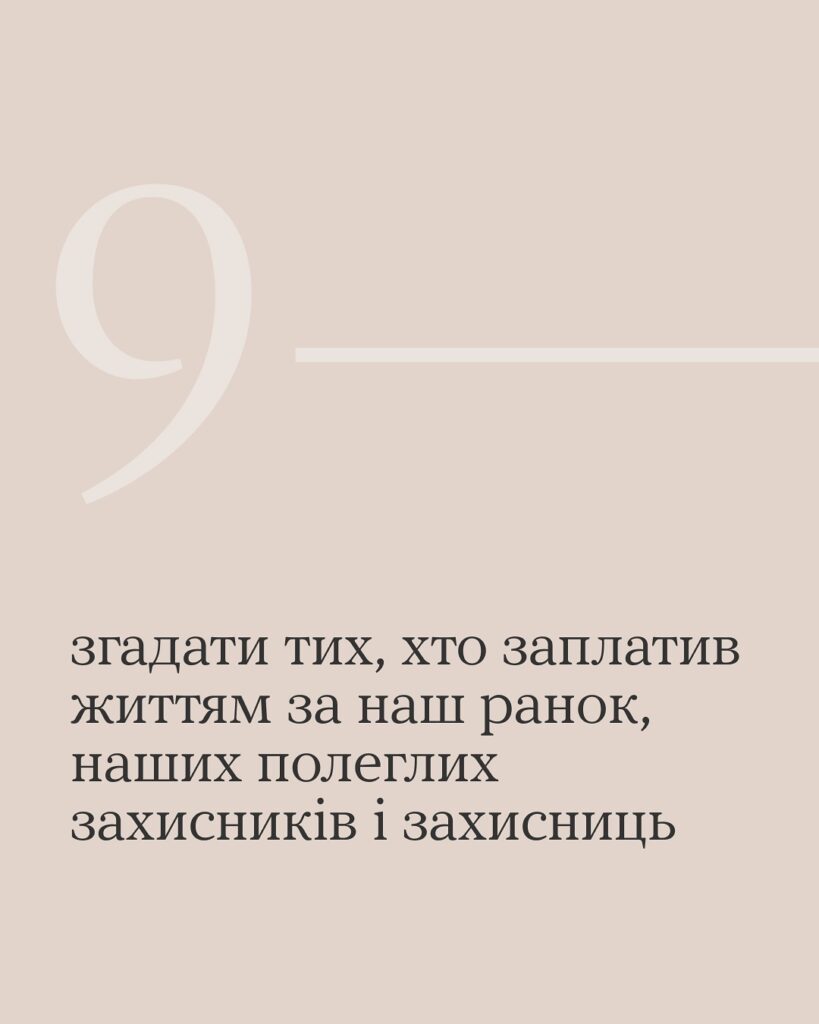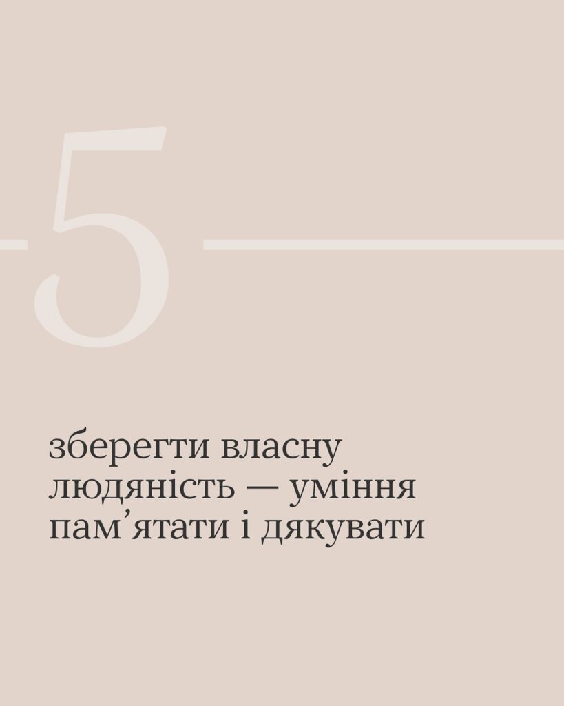 А ти зробиш одну маленьку та дуже цінну дію. Шануй себе і шануй тих, хто загинув.