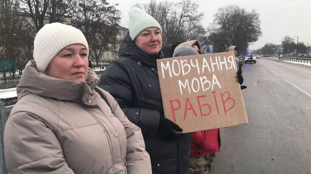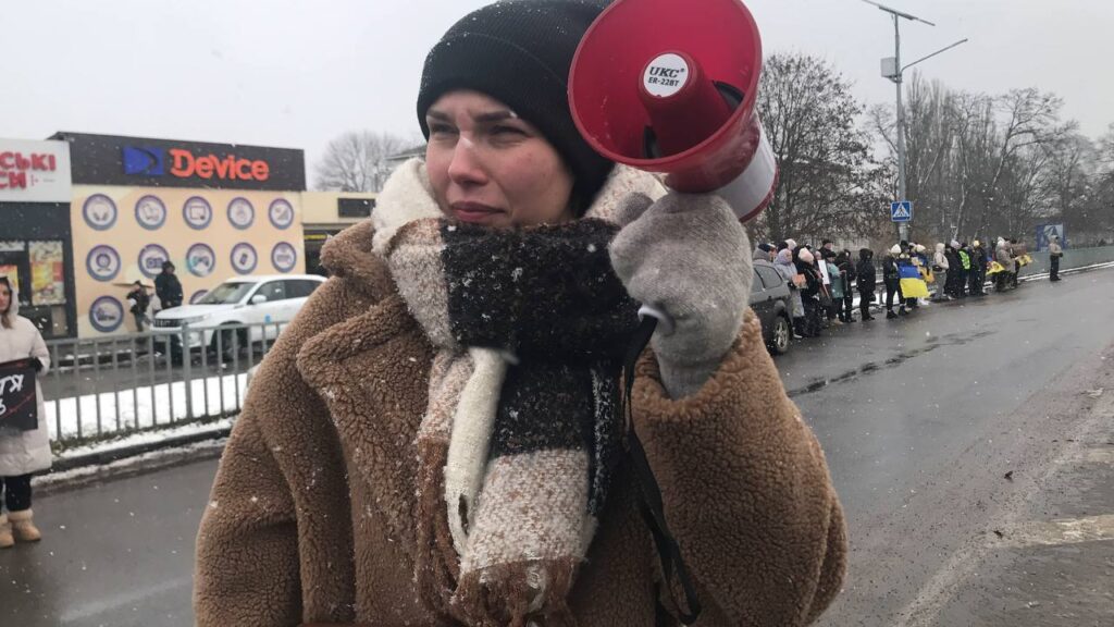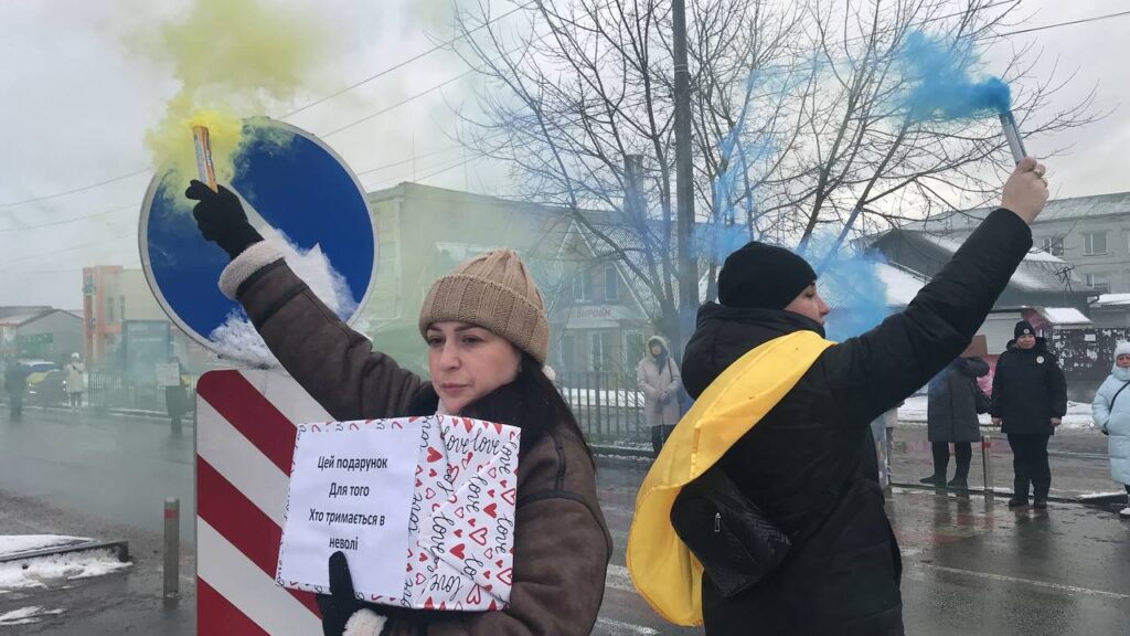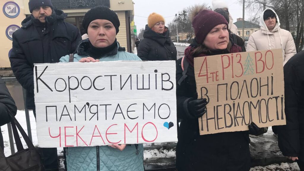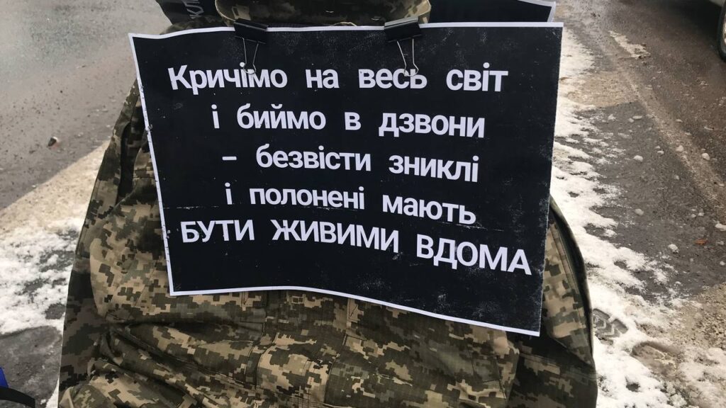 Після цього учасники рушили мирною ходою містом і зупинилися на автодорозі Київ—Чоп, аби ще раз наголосити: біль родин, які чекають своїх синів, чоловіків і батьків, не має вихідних і не зникає з часом.