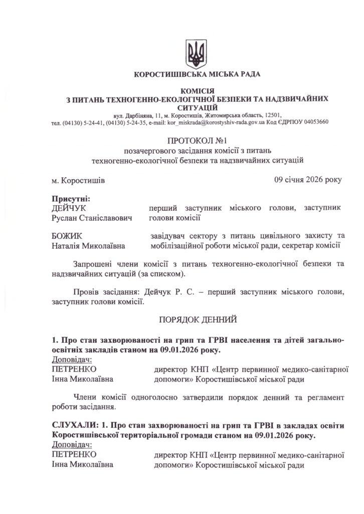 Відповідне рішення було прийнято 9 січня 2026 року на позачерговому засіданні комісії з питань техногенно-екологічної безпеки та надзвичайних ситуацій (ТЕБ та НС).
