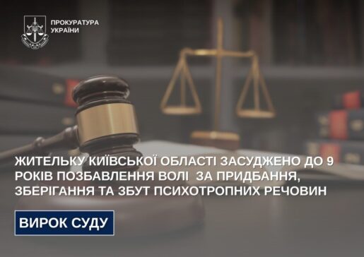 Жительку Київської області засуджено до 9 років позбавлення волі за придбання, зберігання та збут психотропних речовин