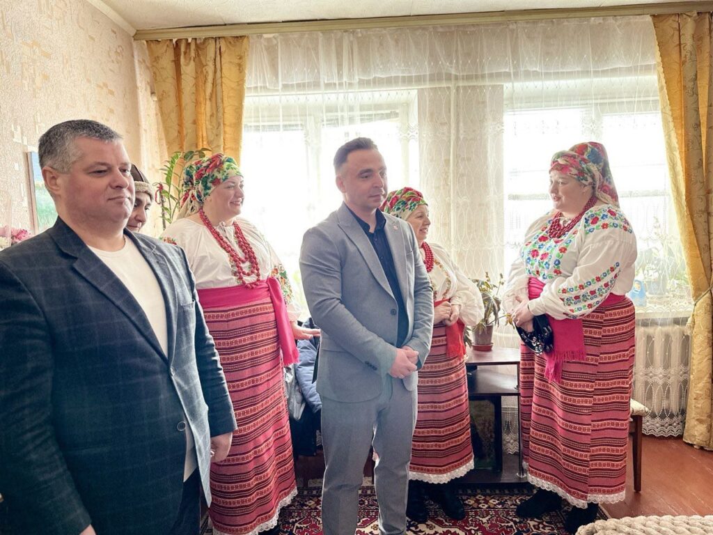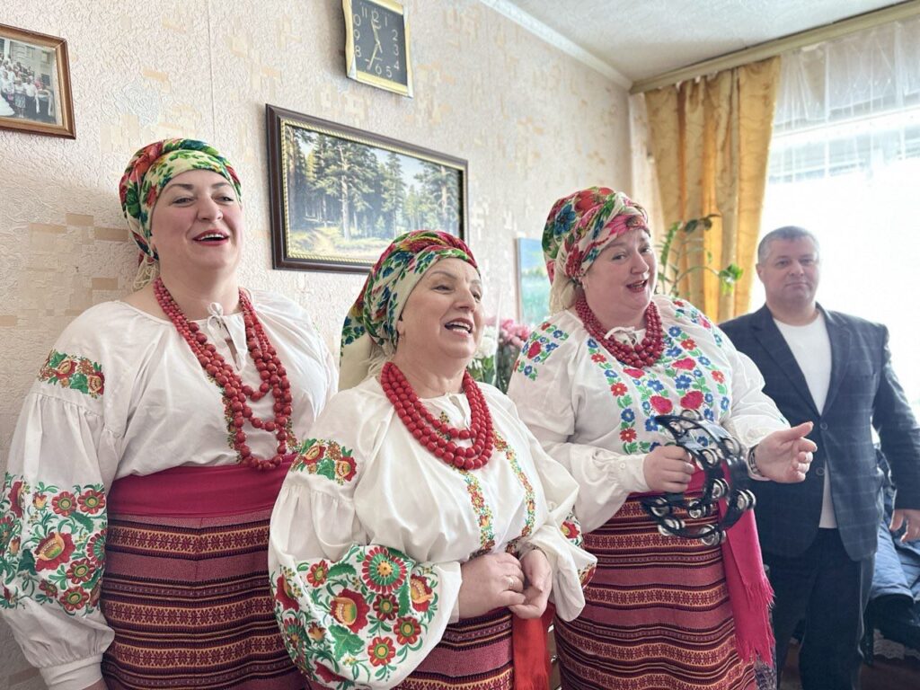 Урочисту атмосферу свята доповнили вітальні пісні у виконанні представниць відділу культури та туризму міської ради. Вони подарували ювілярці, її родині та друзям, які також прийшли привітати любу іменинницю, тепло, щирі емоції та святковий настрій.