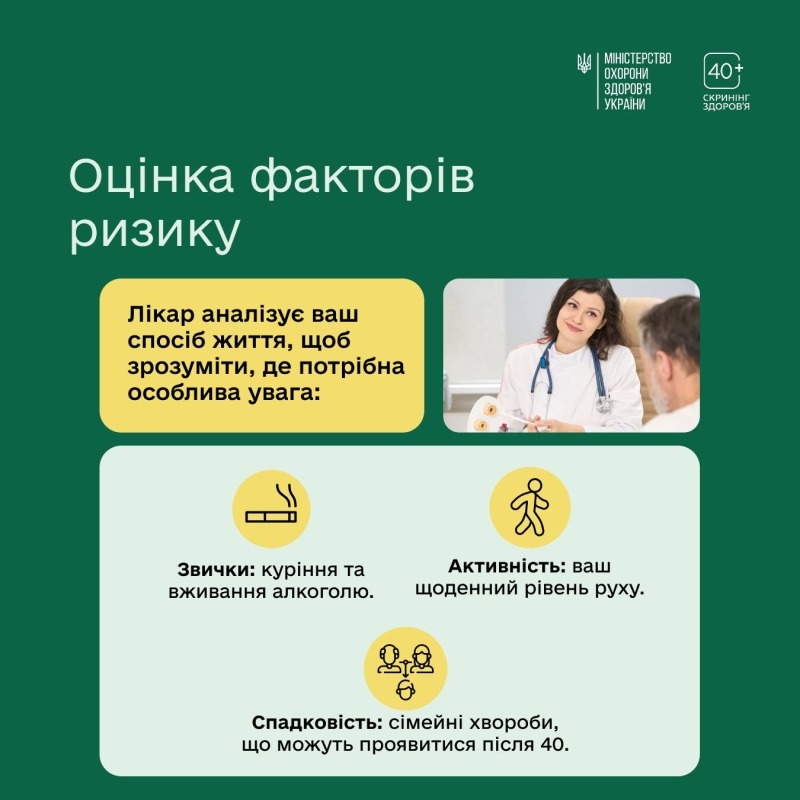Скринінг здоровʼя 40+: Розповідаємо на картках! Гортайте ⤵️