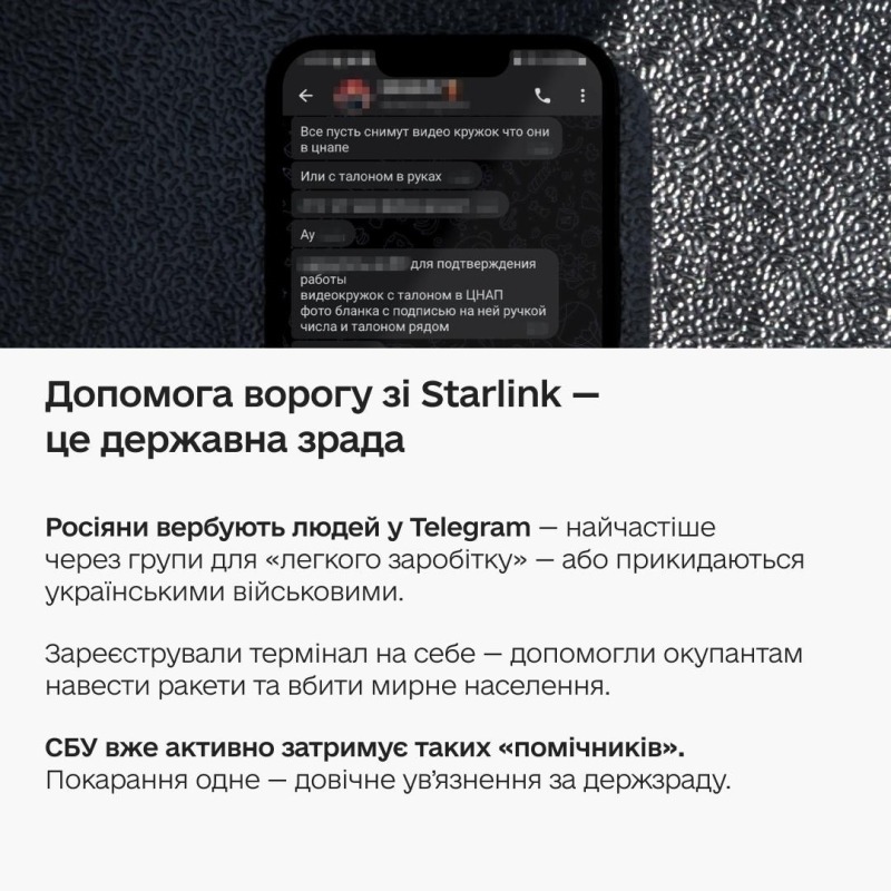 Росіяни продовжують вербувати людей, щоб реєструвати термінали Starlink. Ворог використовує їх, щоб наводити ракети на мирні міста та вбивати українців.