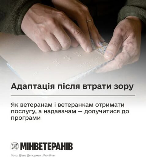 Ветерани і ветеранки, які повністю або частково втратили зір унаслідок війни, можуть пройти спеціальну програму адаптації. Вона допомагає опанувати навички повсякденного життя в нових умовах: самостійно пересуватися містом, користуватися смартфоном і комп’ютером, працювати з інформацією, організовувати побут і впевненіше почуватися щодня.