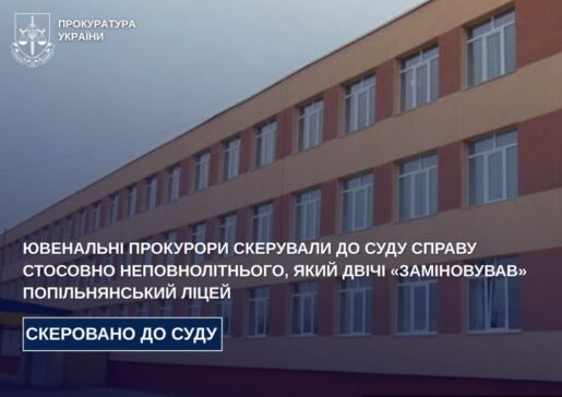 Ювенальні прокурори скерували до суду справу стосовно неповнолітнього, який двічі «заміновував» Попільнянський ліцей